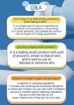 - 비사볼올, 세라마이드, EGF, 판테놀과 같은 유익한 성분이 함유되어 건조함과 가려움을 완화하는 데 도움이 되며, 약산성 pH를 유지하여 피부를 건강하고 균형 있게 유지합니다.
