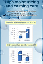 - 판테놀과 히알루론산은 피부에 수분 장벽을 형성하고, 자극받은 피부를 진정시키고 보습해줍니다.